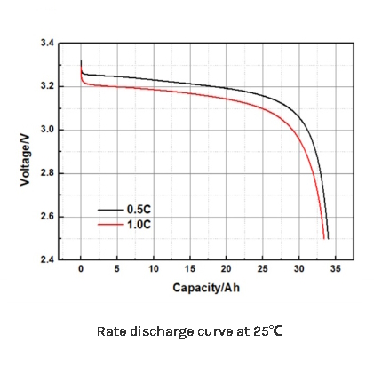 - Descarga continua: Soporta una corriente de descarga continua de 1C (32A), ideal para aplicaciones de potencia moderada.