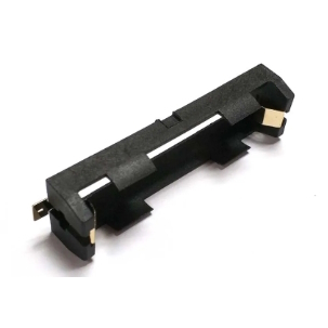 Adecuado para todo tipo de ensamblaje de baterías 18650. La batería puede ser insertada directamente al soporte. El soporte cuenta con pines verticales para montaje a PCB o soldado.