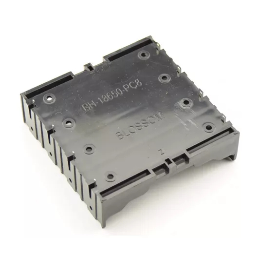Adecuado para todo tipo de ensamblaje de baterías 18650. La batería puede ser insertada directamente al soporte. El soporte cuenta con pines verticales para montaje a PCB o soldado.